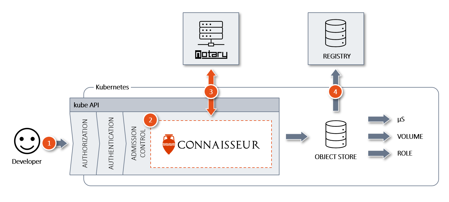 | Denial of service | When sending an extraordinary amount of requests to Connaisseur or triggering unexpected behavior, Connaisseur might become unresponsive or crash. As a result, image signatures can't be verified. | Failure Policy: The webhook that is connected to Connaisseur denies all request automatically, should the Connaisseur service be unavailable. Thus, malicious images cannot enter the cluster. Additionally, multiple instances of Connaisseur can be run for better load balancing. |